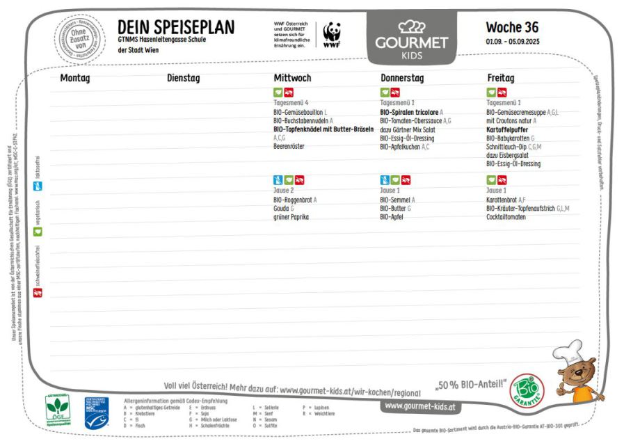 Die Schüler:innen können sich am Anfang des Schuljahres ebenfalls für eine separate Jause in der 10 Uhr Pause anmelden und haben täglich die Möglichkeit sich in den Pausen frisches Obst und Gemüse zu nehmen.